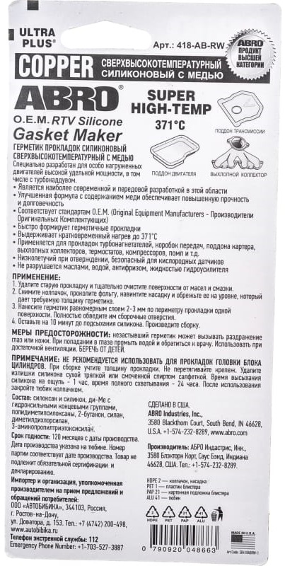 Федеральная сеть "МасломМаркет" поставляет только оригинальную продукцию ABRO