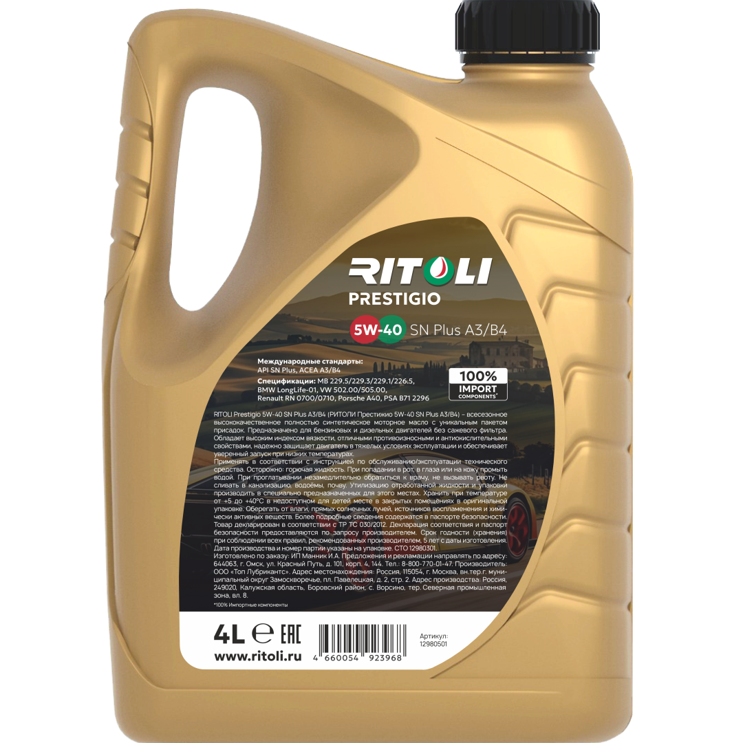 Масло моторное RITOLI Prestigio 5W40 SN Plus A3/B4 4л