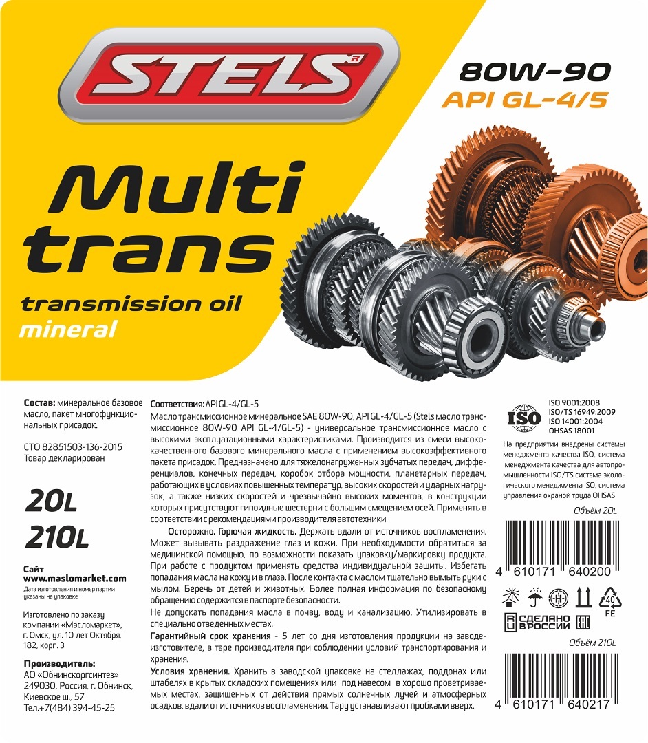 Масло трансмиссионное STELS Multitrans 80w-90 GL-4/5 20л